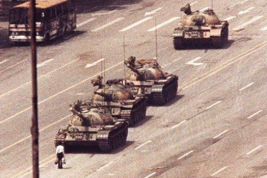Una de las fotos más famosas de la historia. El hombre que se puso delante de los tanques en Tiananmen (China) en junio de 1989.