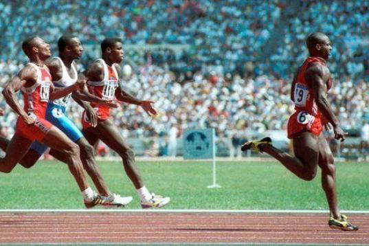 Ben Johnson gana la medalla de oro en los 100 metros de los JJOO de Seúl de 1988.