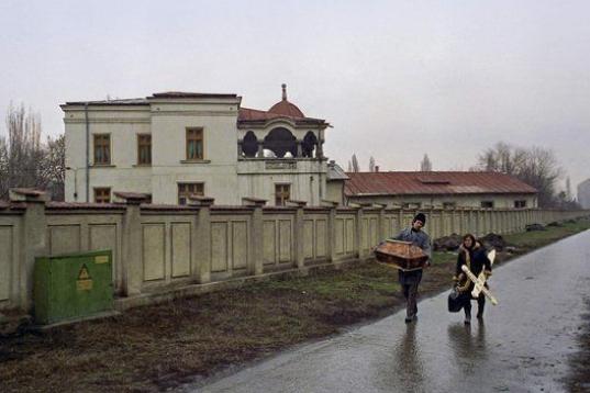 Unos padres rumanos llegan a Bucharest con el féretro de su bebé muerto por el SIDA en 1990.