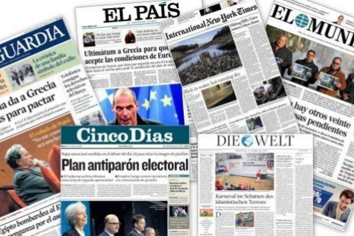 Los atentados contra Charlie Hebdo están presentes en las carrozas carnavaleras de Colonia, leemos en La Vanguardia, mientras Die Welt reivindica la libertad de tono en esta fiesta en la que "ni queremos atacar al Islam gratuitamente, ni queremos ser políticamente correctos y autocensurarnos. Queremos que el carnaval siga siendo lo que hasta ahora, sin miedo a un atentado terrorista". "No podemos dejar que las amenazas cambien nuestra idea de democracia" remacha en una entrevista en El País el dibujante danés Lars Vilk, objetivo de los atentados de Copenhague. En un editorial, el diario global sostiene que "Europa debe poner todos los medios para evitar la normalización del terrorismo islamista" cuando una nueva base del yihadismo, advierte ABC, se instala en Libia. La posibilidad de una intervención militar es objeto de intenso debate en Italia. El primer ministro Renzi, leemos en La Repubblica, lo descarta.