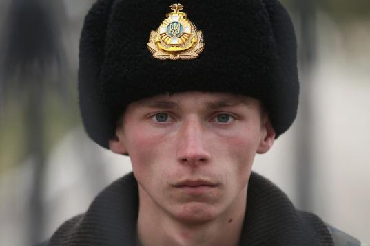 Un joven soldado ucraniano en una base militar rodeada por cientos de soldados rusos en la península de Crimea.