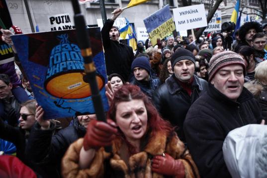 Hasta Nueva York han llegado las protestas por la posible intervención militar en Ucrania. Frente al consulado ruso en NYC este 2 de marzo.