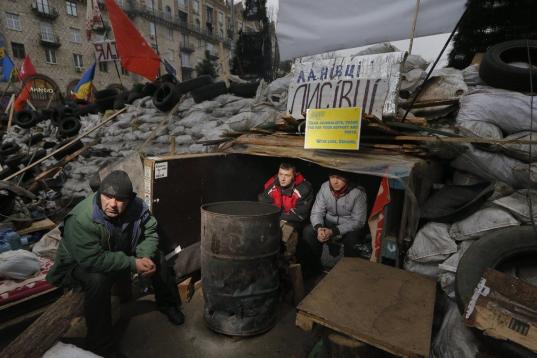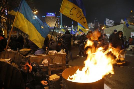 Activistas a favor de la Unión Europea acampan en Kiev, Ucrania.