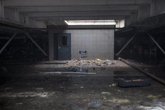 En esta foto datada del 21 de enero de 2015, un carrito de maletas preside un pasillo lleno de escombros y abandono.