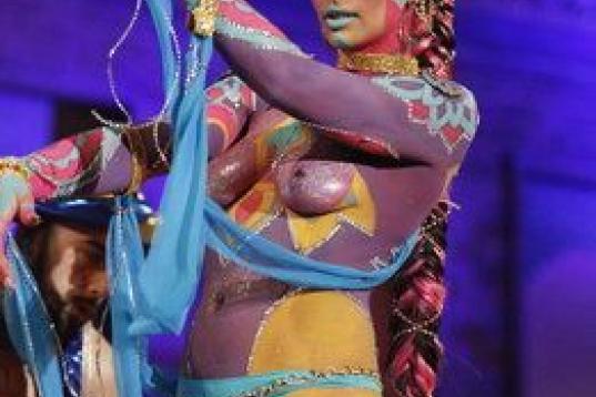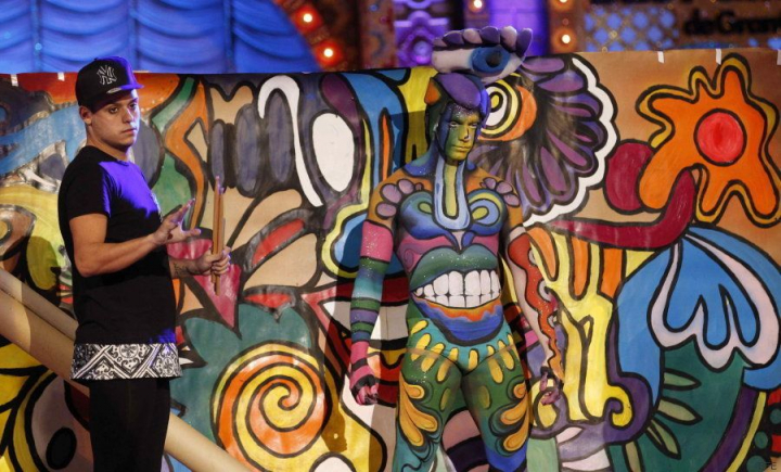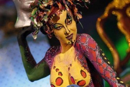 Siete horas de trabajo fueron necesarias para recrear este dibujo en el cuerpo de la modelo, quien se impuso a los otros 13 dibujos presentados al certamen de body painting que tuvo como escenario el parque de Santa Catalina. Allí se pudo ver un auténtico derroche de talento, creatividad y mucho trabajo artístico, completado con cuidadas escenografías y coreografías.