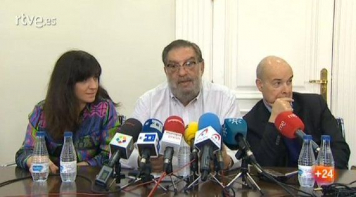 Judith Colell, Enrique González Macho y Antonio Resines, durante la comparecencia de Macho en la Academia de Cine