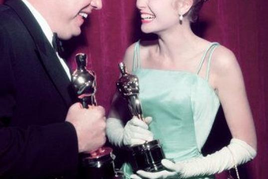 En 1955, una radiante Grace Kelly recogió la estatuilla por su papel en La angustia de vivir (The Country Girl) enfundada en este diseño aguamarina, creación de la oscarizada diseñadora de vestuario Edith Head.