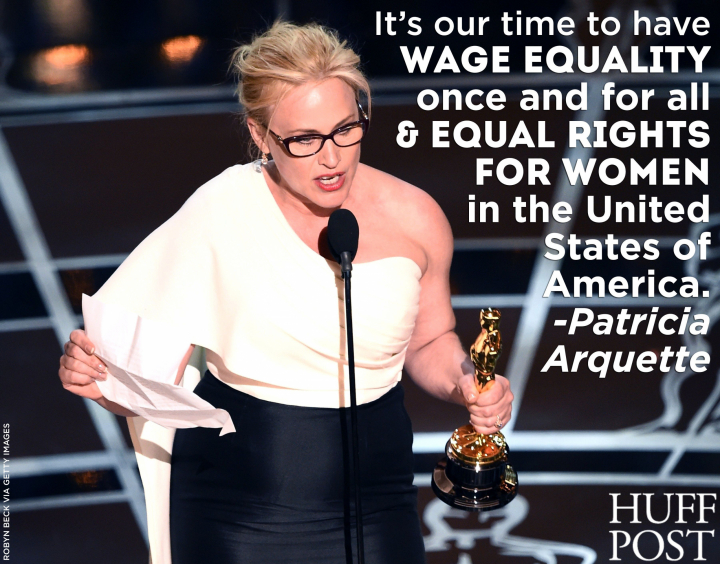 Arquette aprovechó su discurso de agradecimiento para defender los derechos de la mujer. "Ya es hora de que tengamos igualdad de salarios de una vez por todas e igualdad de derechos para las mujeres en los Estados Unidos de América", dijo. Meryl Streep y Jennifer Lopez saltaron de sus asientos para apoyar sus palabras.