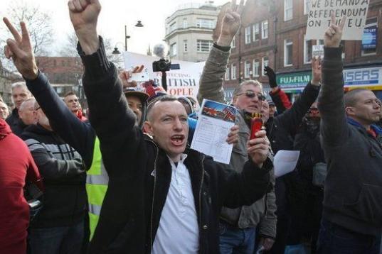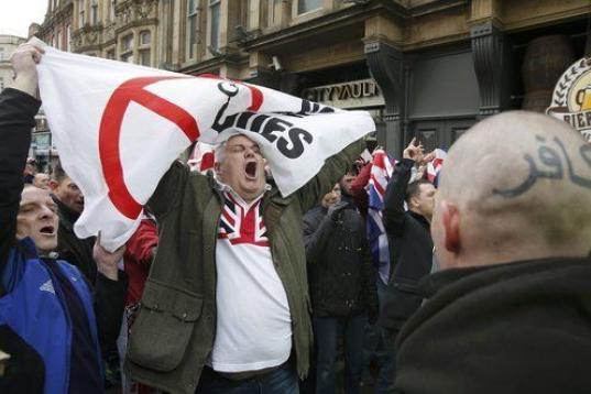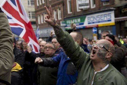 Los convocantes de PEGIDA habían pronosticado una manifestación pacífica. Insistieron en que no es un grupo racista y en que la extrema derecha no es bienvenida. Lo cierto es que durante la marcha se han exhibido banderas y pancartas del Frente Nacional británico, un partido de extrema derecha.