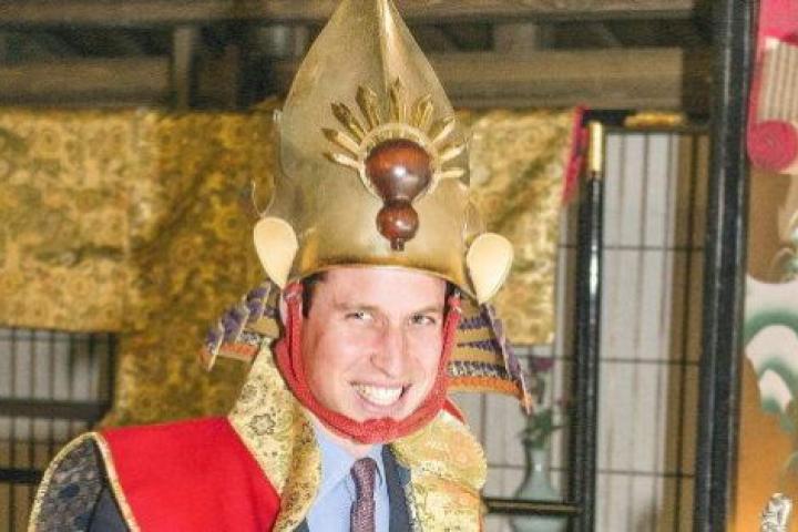 El príncipe Guillermo de Inglaterra se disfrazó este sábado de guerrero samurái durante una visita a los estudios de la cadena pública nipona NHK, en la tercera jornada de su viaje a Japón, según la imágenes emitidas por la televisión japonesa.
