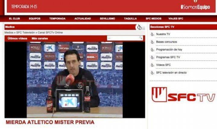 En uno de los vídeos de la página, concretamente en la rueda de prensa del técnico del Sevilla, Unai Emery, previa al choque, se podía leer como título: "Mierda Atlético Míster previa".