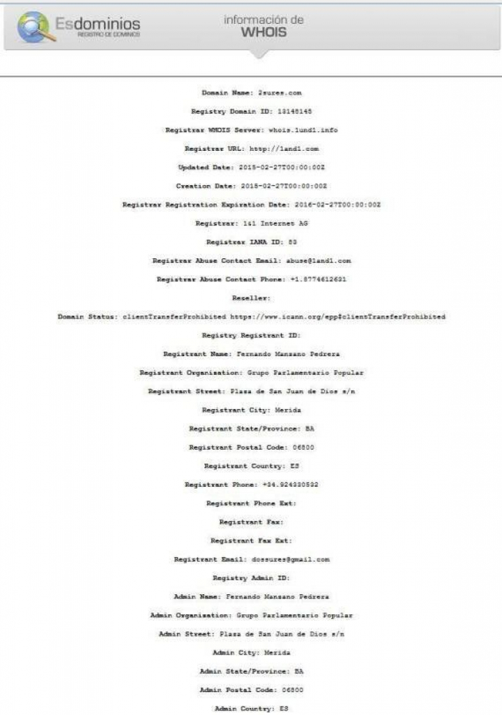 Según se puede ver en el registro del dominio, el dueño de 2sures es Fernando Manzano, presidente de la