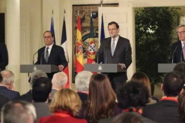 Los presidentes del Gobierno de España, Mariano Rajoy, Francia, François Hollande, y Portugal, Pedro Pasos Coelho, junto al presidente de la Comisión Europea, Jean Claude Juncker, han presentado hoy un plan para impulsar las interconexiones energéticas que incluye la reanudación del proyecto de gasoducto 'Midcat'.