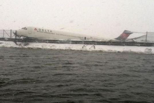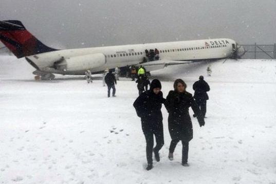Hacia las 11:05 horas (16:05 GMT), un avión de la compañía Delta Airlines procedente de Atlanta se salió de pista al aterrizar en LaGuardia y los responsables del aeropuerto se vieron obligados a cerrar todas las pistas.