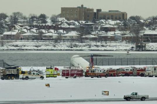 Después de tocar tierra en la pista 13 del aeródromo, el avión perdió el control y terminó impactado contra una de las vallas de seguridad del aeropuerto y la parte delantera del aparato quedó asomando a las aguas de la bahía de Flushing.