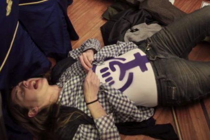 "¡Vuestra legislación del aborto nos mata!", "¡por una vida digna!", han sido algunas de las consignas que han gritado las jóvenes, autodenominadas Feministas Autónomas, antes de ser desalojadas de la sala.