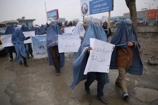 Hombres afganos se manifiestan en burka por los derechos de las mujeres: "Es como una prisión"