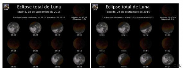 Lo que sí habrá son eclipses de Luna. Este mismo año se podrá disfrutar de uno: ocurrirá el próximo 28 de septiembre y será observable durante las últimas horas de la noche. Podrá contemplarse desde cualquier punto de España, con la única condición de que la Luna esté sobre el horizonte, y se verá más o menos así.
