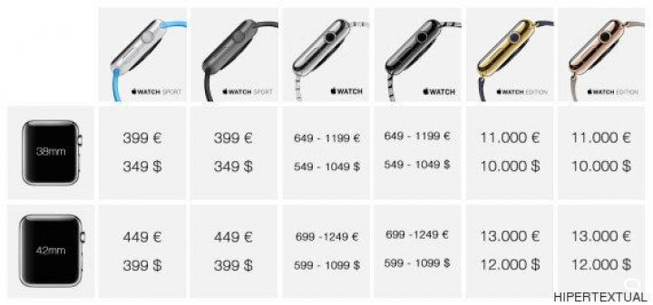 Sobre el Apple Watch, pocas novedades respecto en lo que a sus caracteristicas técnicas se refiere, pero por fin Apple ha dado toda la información respecto al precio y disponibilidad. En este sentido, el nuevo smartwatch de Apple cuesta desde 349 euros el más barato y se dispara hasta los 18.000 euros para el modelo Edition, el más caro y lujoso fabricado en oro de 18 quilates.