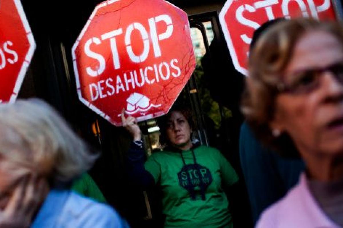 El 17 de febrero, una veintena de personas entró en el pleno municipal de Moratalaz y desplegó una pancarta en la parte trasera de la sala que decía: "Ni gente sin casas, ni casas sin gente. Stop desahucios". Los activistas gritaron esa misma frase y otras consignas del estilo.