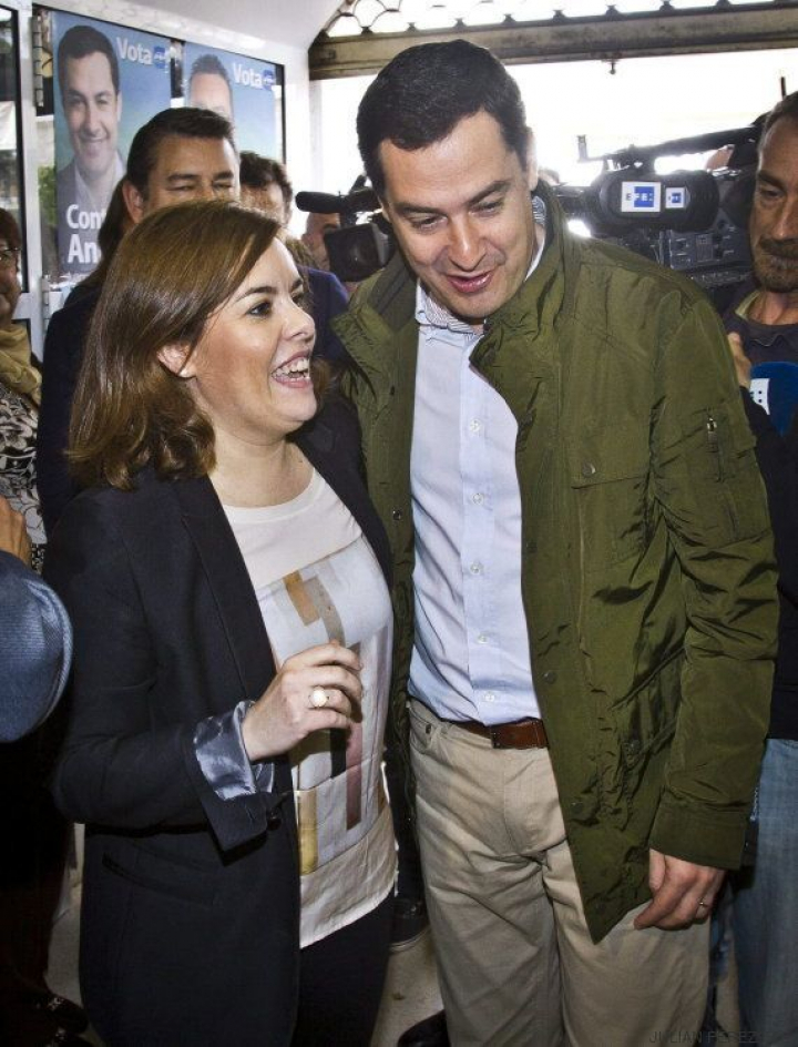 "Podemos, nosotros sí que podemos", ha afirmado Juan Moreno (PP), en un desayuno con militantes celebrado este martes en la localidad onubense de Aljaraque, en el que ha estado arropado por la vicepresidenta del Gobierno, Soraya Sáenz de Santamaría, entre otros dirigentes populares.