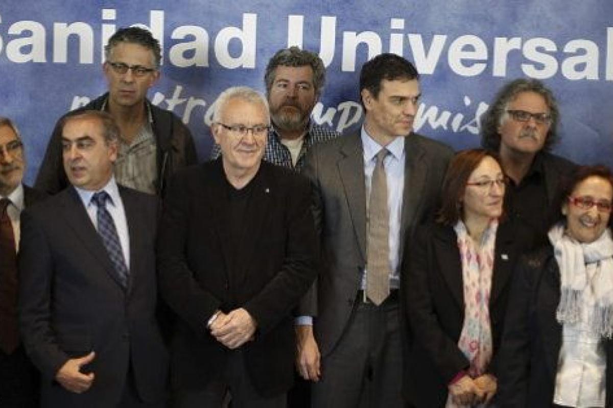 El líder del PSOE, Pedro Sánchez; el diputado de CiU Carles Campuzano; los de IU Cayo Lara y Gaspar Llamazares, y el de UPyD Toni Cantó son algunos de los políticos que han asistido al acto, en el que han coincidido en la necesidad de poner fin al real decreto ley 16/2012.