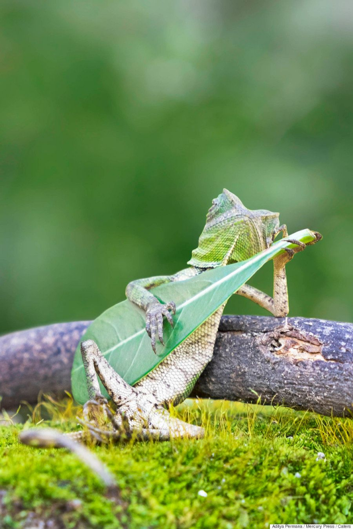 El fotógrafo Aditya Permana se topó con este lagarto en Yogyakarta (Indonesia), y logró captar el momento en el que el pequeño reptil cogió una hoja y la sostuvo como si fuese una guitarra. Permana estuvo mirando al lagarto durante una hora antes de hacer la foto, pero está claro que mereció la pena el tiempo de espera.