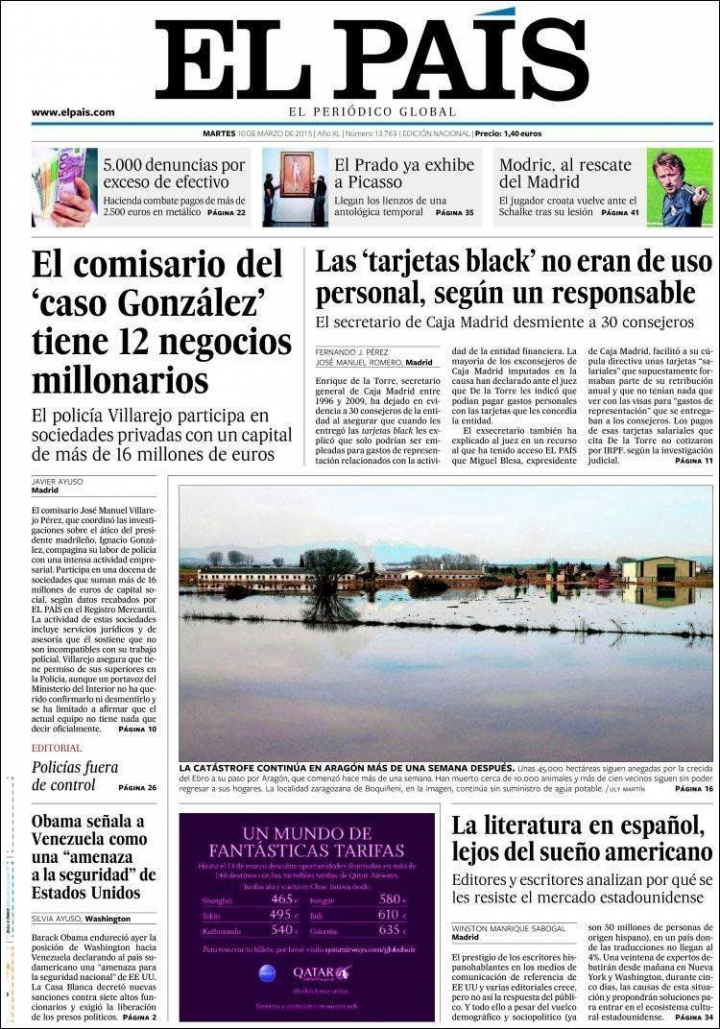 Una situación que, a juicio del periódico global en un editorial, debe llevar al ministro del Interior a explicar el caso o hacerse responsable de la actuación de estos "policías sin control". Y recuerda que "la existencia de grupos en la sombra dentro de las fuerzas policiales es motivo de escándalo en otras democracias". En paralelo, ABC nos informa de que "(Francisco) Granados obtenía 900.000 euros por colegio". La trama Púnica, que ha llevado a la cárcel al consejero de Interior de Esperanza Aguirre, "facilitaba suelo y permisos para abrir centros concertados a cambio de mordidas".
