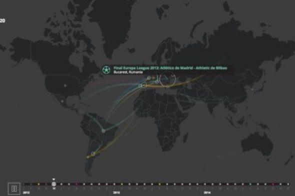 Un mapamundi en el que se han analizado más de 16.000 eventos a nivel global y los desplazamientos internacionales de personas a lo largo de los últimos 3 años, de 2012 a 2014, observando que, pese a la crisis, el número de personas que viajan al extranjero para asistir en directo a grandes acontecimientos ha aumentado un 82%.