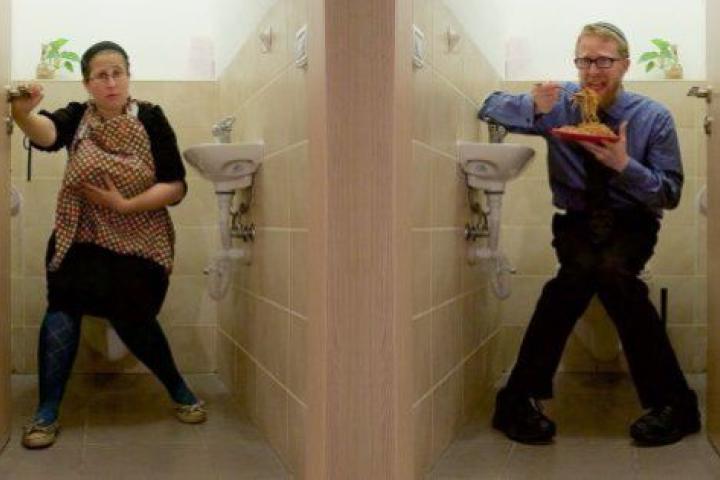 Shugert presentó como fotografía un montaje con dos imágenes enfrentadas: en una, ella finge dar el pecho en un baño, y en la otra, su marido come espaguetis en el mismo baño. "Si no estás dispuesto a comer en el baño, no esperes que yo alimente a mi hijo ahí", dice el texto que acompaña a la imagen.