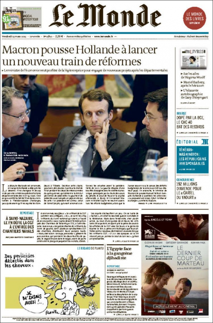 Otros halcones de la zona euro, como los directores de los bancos centrales alemán y holandés, vuelven a mostrar su miedo en Financial Times a la compra de deuda pública del BCE porque países como "Francia e Italia no van a llevar a cabo reformas impopulares". Sin embargo, leemos en Le Monde, el ministro de Economía, Emmanuel Macron, presiona a Hollande para hacer más reformas aprovechando el relanzamiento de la economía". Más que nada porque puede cambiar la coyuntura. Die Welt alerta sobre "el dólar loco", cuya debilidad frente al euro puede ser explosiva.