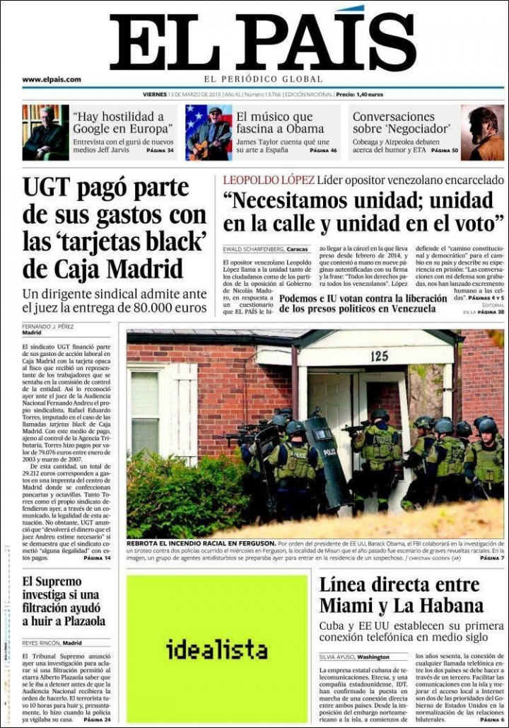 UGT considera que no incurre en delito pero El Mundo, en un editorial, estima que es suficiente para que "Méndez de un paso atrás en UGT, que necesita una renovación urgente". Otra investigación, en este caso del Supremo, "investiga la filtración que ha permitido huir al etarra Plazaola", señala ABC. "El etarra tuvo 10 horas para huir y, supuestamente, lo hizo cuando la policía ya vigilaba su casa".