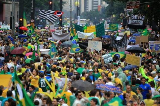 La manifestación tuvo lugar en la Avenida Paulista, una amplia vía de tres kilómetros en el centro comercial de Sao Paulo, y es ya una de las protestas más multitudinarias registradas en esta ciudad, la mayor de Brasil y una de las mayores en la historia del país.