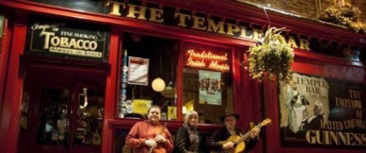 Como se aprecia en la foto, desde la Guinness Store se pueden disfrutar de excelentes vistas de toda la ciudad (no sólo de las pintas de cerveza negra). El Temple Bar, en la imagen de abajo, es uno de los pubs irlandeses más famosos que ningún turista se debe perder.