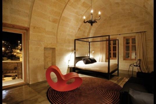 Los toques históricos de la habitación, como una rueca de hace 80 años o un horno de piedra, redondean la decoración de las habitaciones de esta hotel situado en la Cappadocia (Turquía).