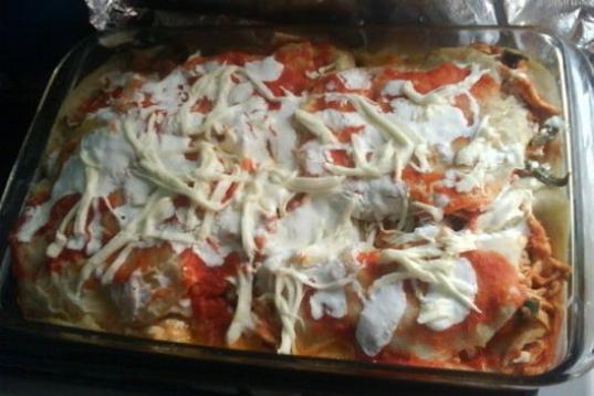 Está hecho con quesos, huevos, leche, nuez moscada, pimienta y pollo. Es fácil y barato pero se tarda en preparar.