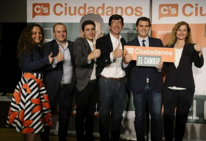 Ciudadanos (C's) ha elegido un hotel de Sevilla para cerrar la campaña. Su líder, Albert Rivera, que en todo momento estuvo, junto al candidato a la presidencia, Juan Marín, ha dicho que aspiran ser "la gran sorpresa".