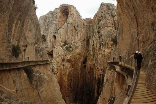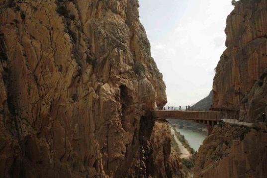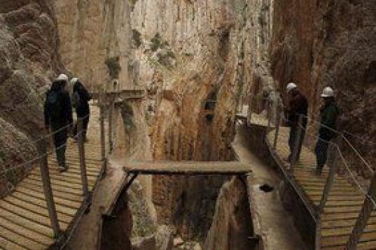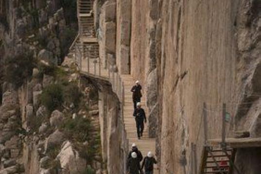 La nueva pasarela abrirá al público el próximo 28 de marzo tras un año de trabajo y tres intentos de restauración. Con paredes verticales que alcanzan los 700 metros de altura y tramos que no superan los diez de ancho, este camino discurre durante 8,5 kilómetros por el Desfiladero de los Gaitanes a más de 100 metros sobre el río Guadalhorce, que se completa en una duración estimada de tres horas y puede recorrerse en ambos sentidos.