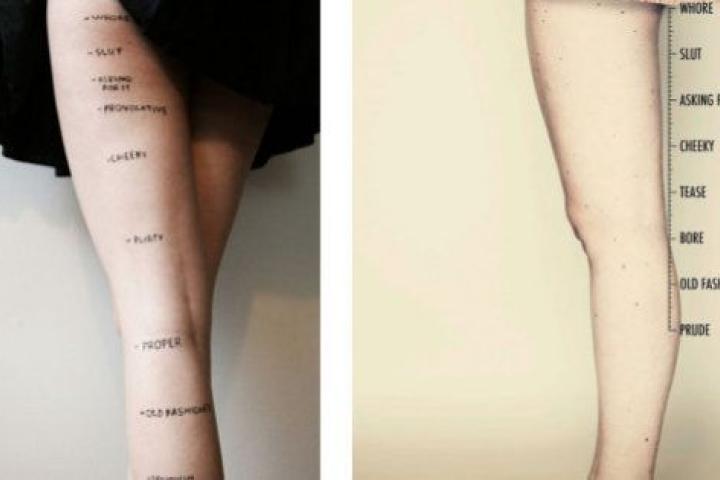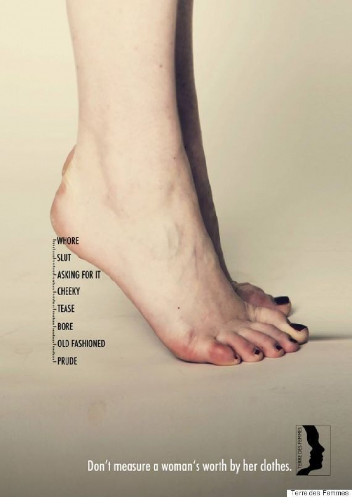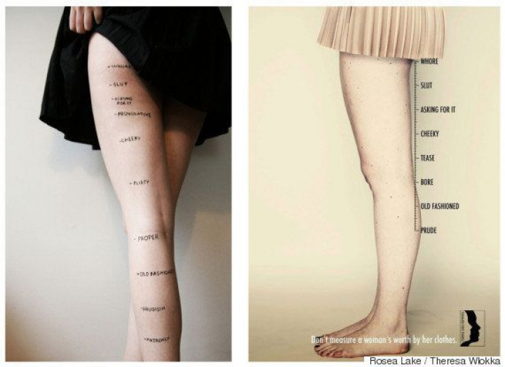 La serie, creada por Theresa Wlokka, estudiante de la escuela de publicidad Miami Ad School en Hamburgo, muestra algunas palabras que se usan para juzgar a las mujeres por la longitud de su falda, la profundidad de su escote o la altura de sus tacones: puritana, pasada de moda, aburrida, provocadora, descarada, lo va pidiendo, zorra, puta.