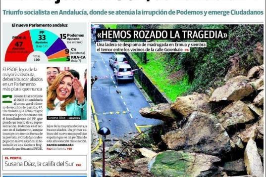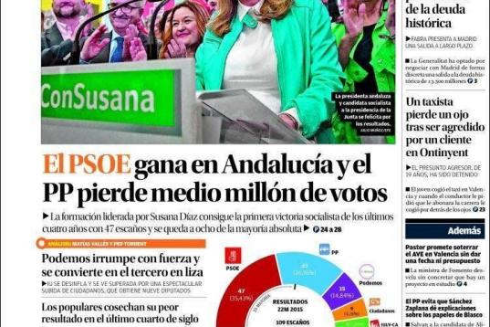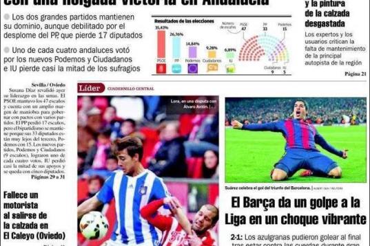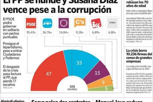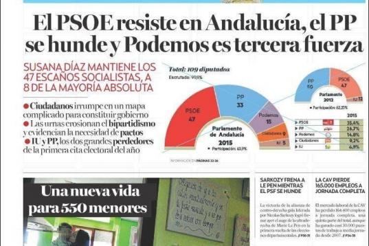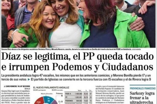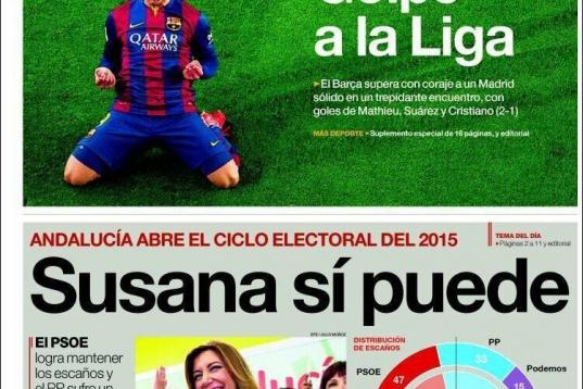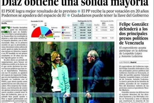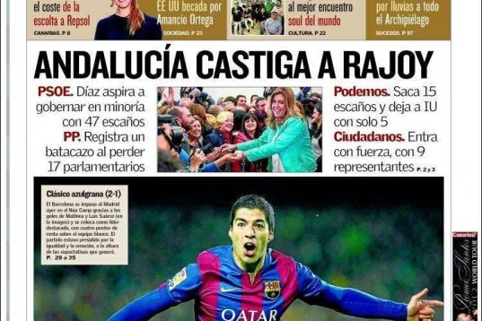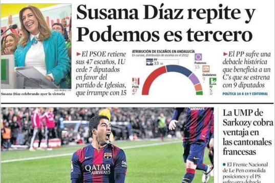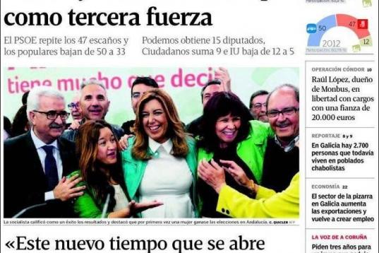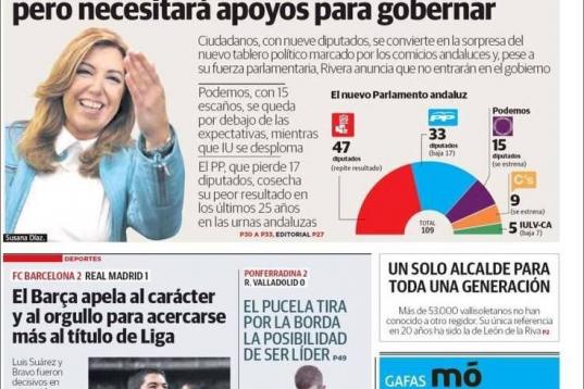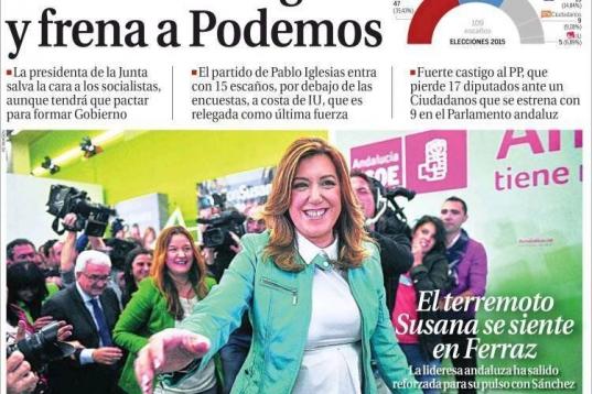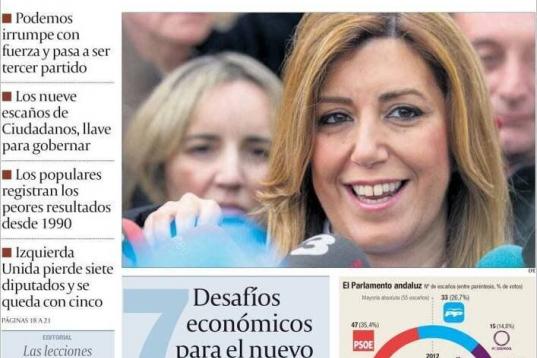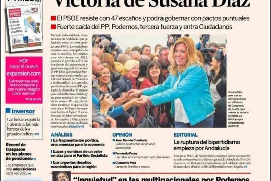 La victoria del PSOE en Andalucía es el tema de portada en todos los periódicos nacionales y económicos, con permiso e incluso compartiendo espacio con el clásico entre Barcelona y Real Madrid.