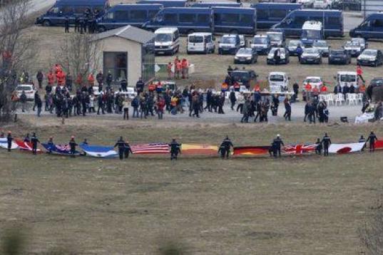 Familiares de los pasajeros del avión Airbus A 320 que se ha estrellado hoy en los Alpes Haute Provence.