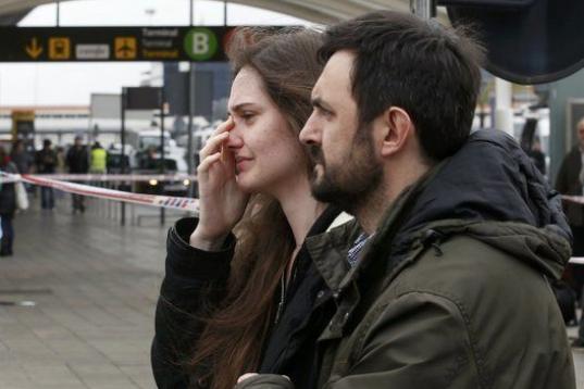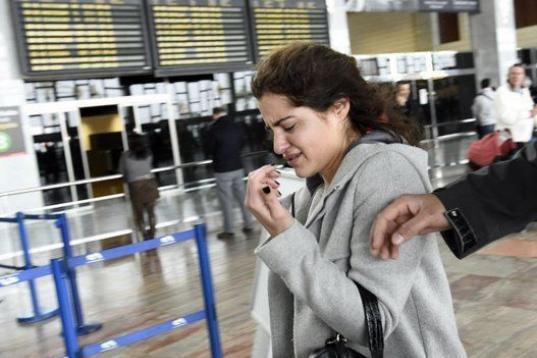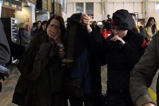 Una mujer llora en El Prat.
