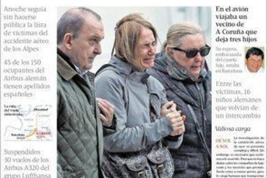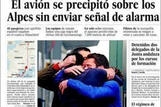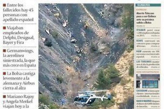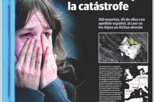 Tragedia y catástrofe son las palabras más repetidas en las primeras de los diarios, al igual que las imágenes del lugar donde cayó el avión y de la angustia de los familiares a la espera de noticias.
