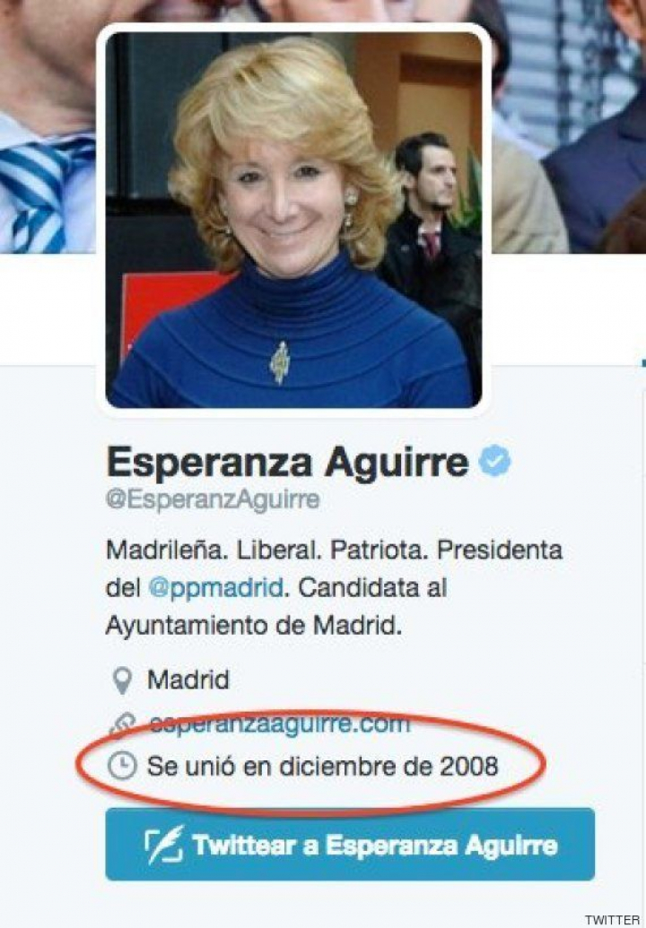 La presidenta del PP de Madrid se unió a la red social en diciembre de 2008. Y no fue una pionera: según recoge la Wikipedia, la red social se lanzó oficialmente el 21 de marzo de 2006.