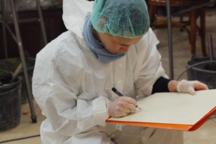 Cuando nos fuimos estaba todo el material excavado ordenado en sus cajas y toda la tierra vuelta a poner en su sitio. Diría que la cripta está más ordenada y recogida de lo que ha estado en los últimos 50 años. Ahora ya no hay nadie que esté yendo porque la excavación ha concluido. La tarea de estudio osteológico de todos restos de adultos que han salido ya está terminado, se hizo a la vez. Lo más interesante se contó en la presentación del martes 17. Nos quedaría por estudiar aproximadamente el 60% de la muestra infantil que se halló en los primeros niveles de enterramiento. Pero eso ahora está parado. Habrá que ver cómo lo hacemos, si en la cripta o en otro sitio, para lo que habría que pedir permisos.