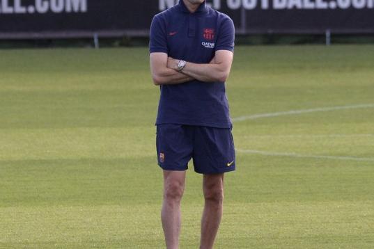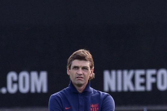 El entonces técnico del Barcelona, Tito Vilanova, observa un entrenamiento en San Joan Despi, España, el jueves 18 de julio de 2013. El viernes 19 de julio, el club anunció que Vilanova no seguirá al frente del Barsa por motivos de salud (AP...