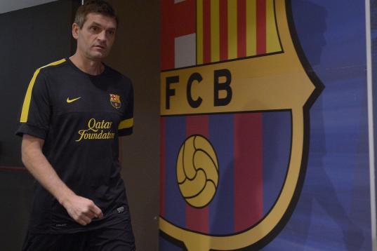 El nuevo técnico del Barcelona, Tito Vilanova, posa durante su presentación como técnico del Barcelona el viernes, 15 de junio de 2012, en Barcelona. (AP Photo/Siu Wu)