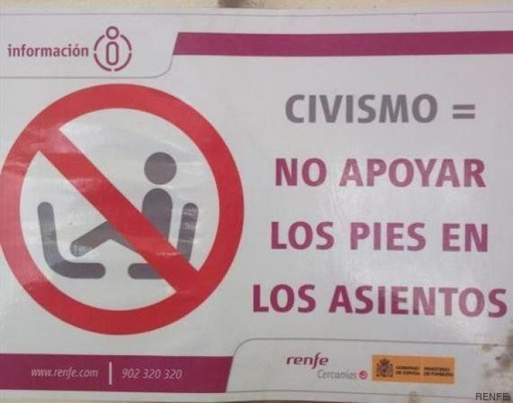 O este tuit del humorista valenciano Eugeni Alemany. "del caloret al olor a pies". Entre las respuestas, la de Renfe, que dice que llama la atención a todos los pasajeros que ve poner los pies donde no deben: