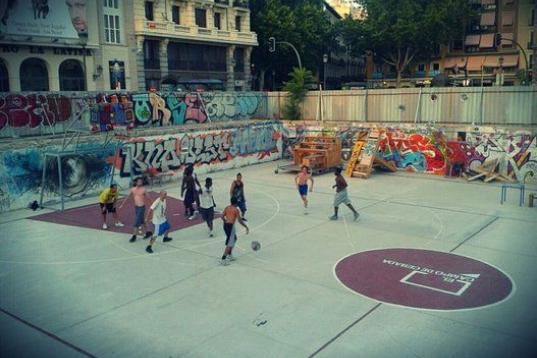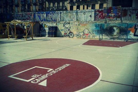 12. DEPORTE. Con dos canastas y unas líneas en el suelo se han montado una pista de baloncesto en la que entrenan a diario un equipo de unos 15 chicas y chicos, que participan en una liga cooperativa con otros equipos de Madrid. Para Agustín, de 20 años, el Campo no es más que eso: "Una cancha, un sitio tranquilo donde estar abstraído de lo que hay fuera, y donde reunirme con los colegas".