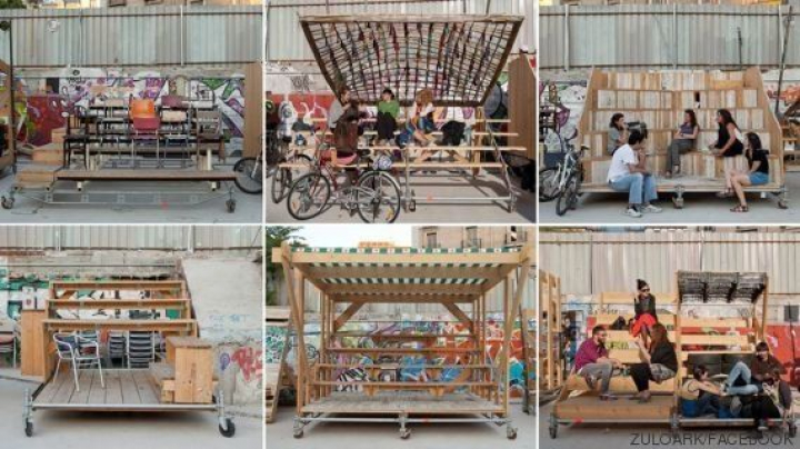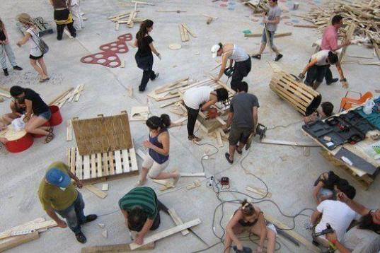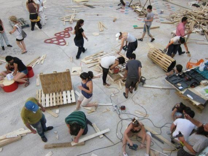 9. MOBILIARIO. Zuloark -junto a Basurama, que se unió después- organiza cada junio un taller que ha bautizado como handmade urbanismo en el que unos 80 estudiantes de la Universidad Javierana de Bogotá (Colombia) ayudan a construir el Campo. "Una herramienta tan tonta como las manos o una llave inglesa puede ser tan útil para transformar una ciudad como un plan urbanístico", dice Pascual. Con su filosofía de Plaza Open Source todo lo que han aprendido y desarrollado está abierto para que "se contagie" y otros lo reutilicen. Por ejemplo, uno de sus bancos, el seat commons, en el que uno puede sentarse enfrente de otro, se ha replicado en contextos distintos en Huesca, Estambul y Lind (Austria).
